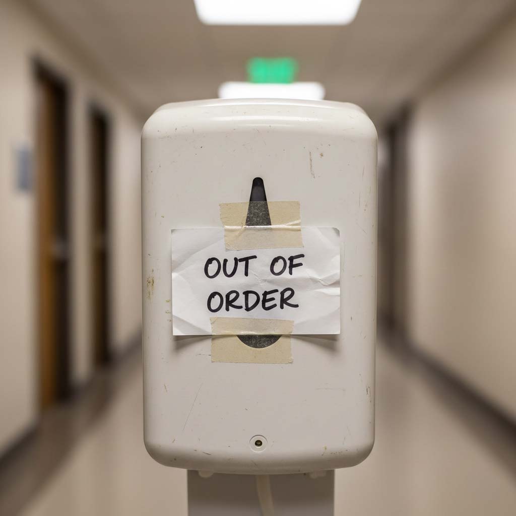 Ugly, broken dispensers showed up in every lobby, store, and office.